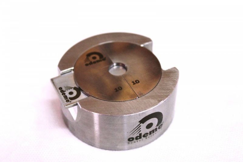 Matriz fabricada em aço inoxidável para confecção de espécimes em formato de disco para diversos testes tais como rugosidade, flexão biaxial, sorção, dureza, entre outros.