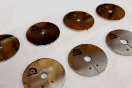 Acompanha um conjunto com sete lâminas bipartidas com diâmetros de 4 a 10 mm por 1 ou 2 mm de espessura.