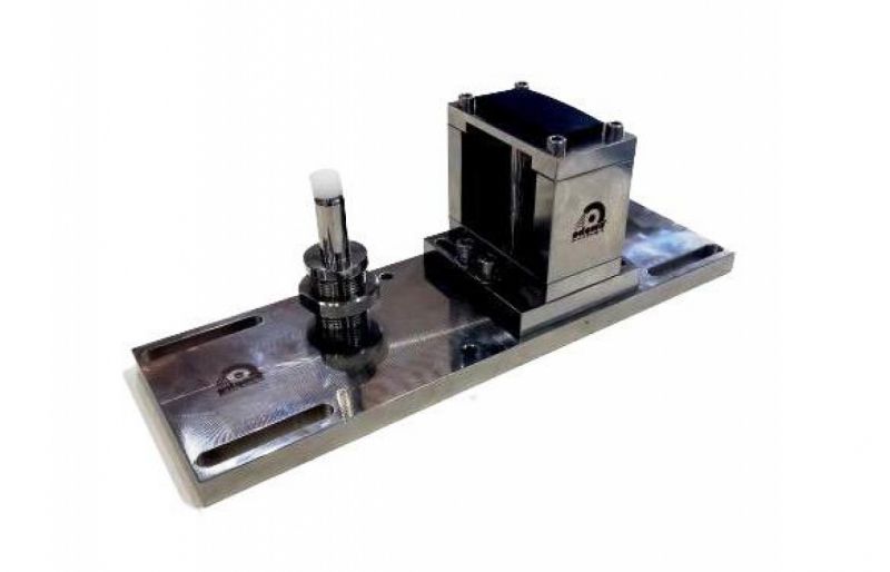Dispositivo para determinação das propriedades de resistência a fadiga das próteses tibiais de joelho de acordo com a norma ISO 14879. Adaptável as diferentes máquinas e fadiga mecânica disponíveis no mercado.