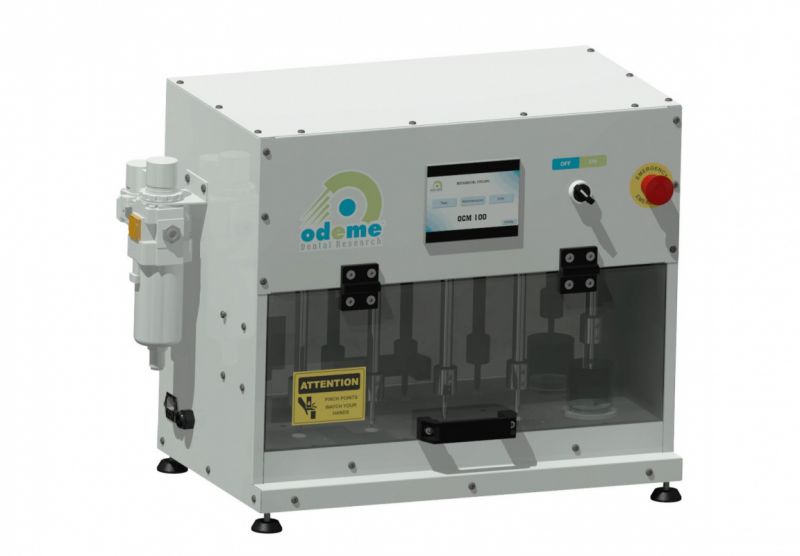 A Máquina OCM100 N é uma solução Odeme para testes de fadiga mecânica no modelo Step Stress. Com ela é possível programar até 12 diferentes rotinas de teste, alterando a frequência, carga nas amostras e número ciclos para cada rotina.