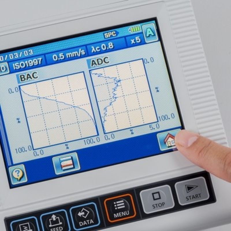 • Impressora térmica de alta velocidade (1.5 vezes mais rápida que as convencionais) faz parte do equipamento. Permite a impressão dos valores, perfis, condição de medição e gráficos BAC and ADC. O modo paisagem torna possível a visualização conforme a tela LCD.