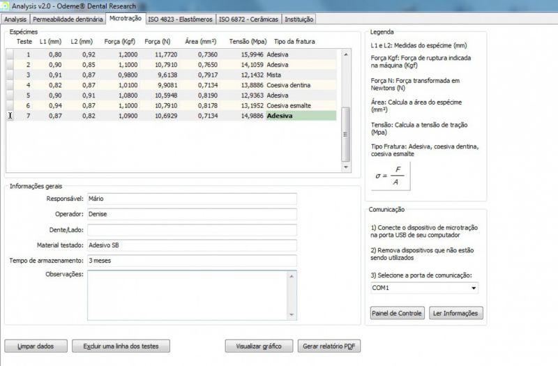 • Padrão de fábrica inclusos com os seguintes testes: Microtração, microflexão 3 pontos, microcisalhamento, 10 garras de microtração, matriz OMT09 ISO 4049; 1 m de tubo tygon;