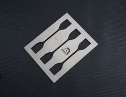 Utilizada para formação de espécimes em formato de ampulheta para testes de tração de materiais elastoméricos odontológicos (materiais de moldagem, material reembasador...). Dimensões do alojamento conforme indicação das normas ASTM ou ISO.