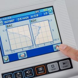• Impressora térmica de alta velocidade (1.5 vezes mais rápida que as convencionais) faz parte do equipamento. Permite a impressão dos valores, perfis, condição de medição e gráficos BAC and ADC. O modo paisagem torna possível a visualização conforme a tela LCD.