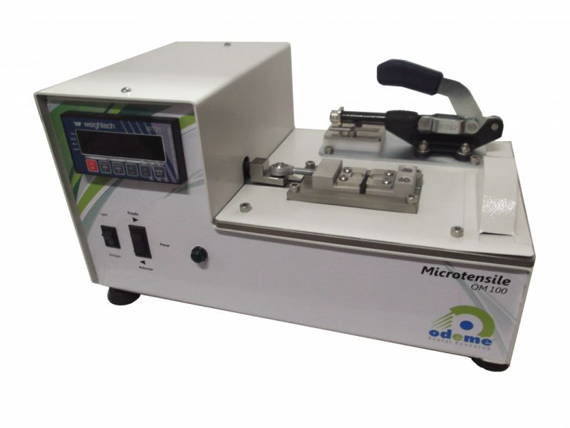 Desenvolvida inicialmente para os testes de microtração, a Microtensile OM100 ganhou novas funcionalidades e atualmente permite outros testes como microcisalhamento, micro flexão três pontos, micro flexão 4 pontos e a mais recente versão de testes de microtração com Jig Geraldeli 2.